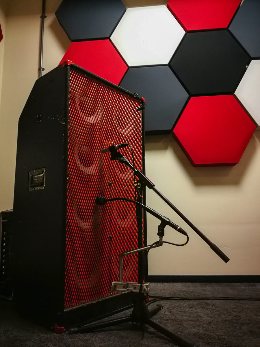 At 3.0 x 2.7 metres, Live Room B can easily accommodate a large drum kit or a few guitar amps. It also features a variable acoustics system to tailor the tone of the room.